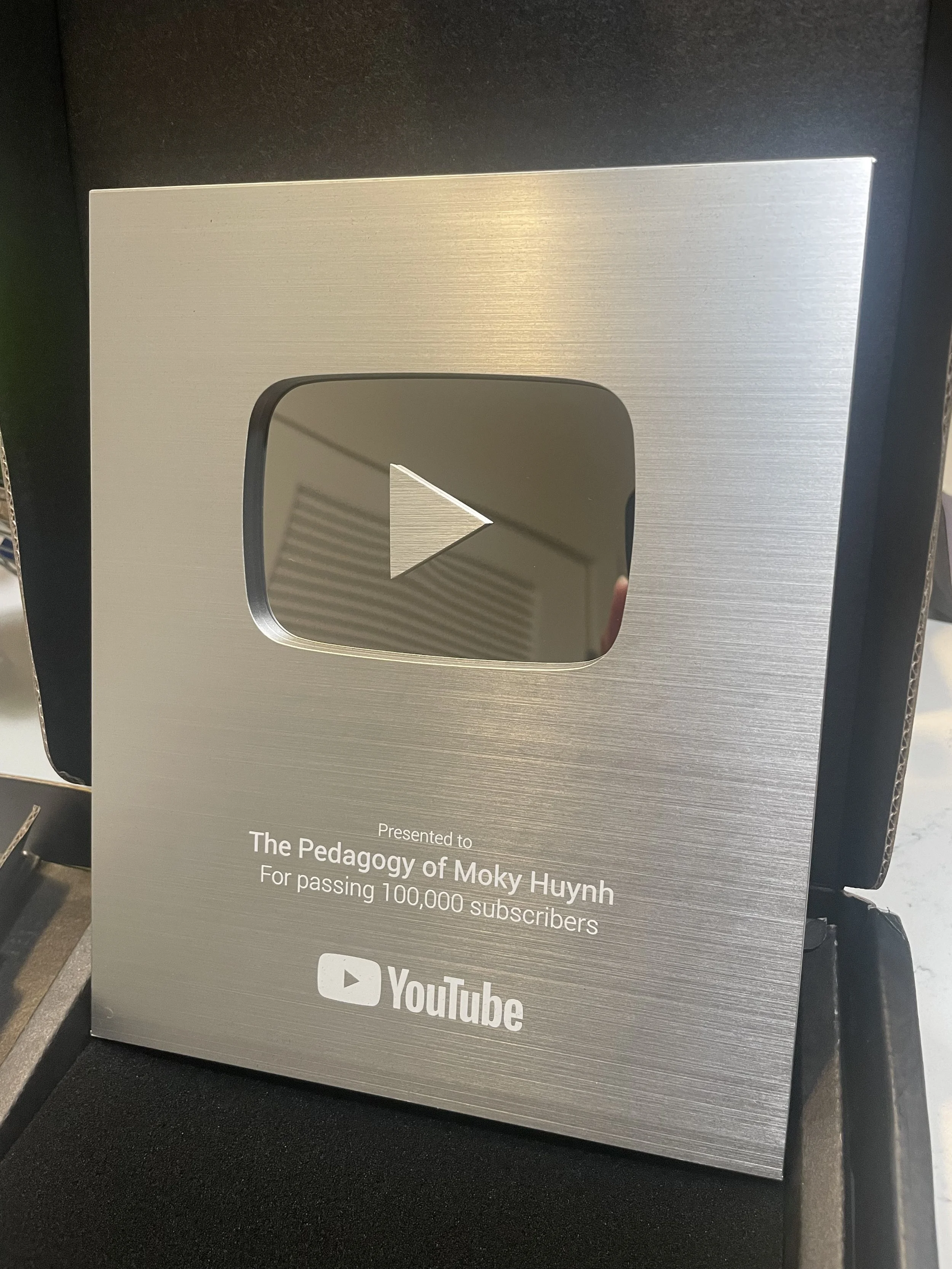 The Silver Creator Award from YouTube was received in July of 2025, roughly 9 months after creating my channel, The Pedagogy of Moky Huynh.