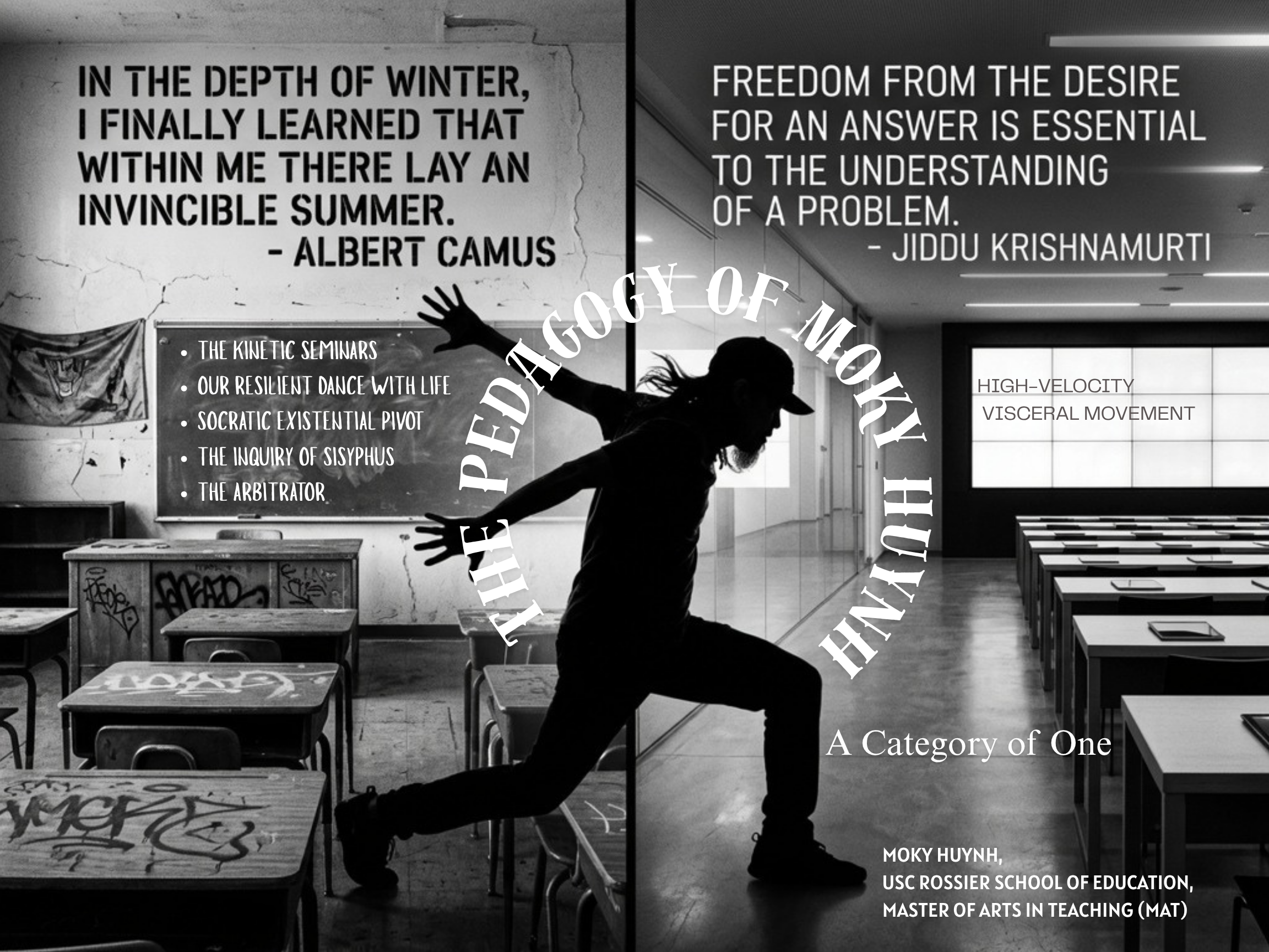 The Pedagogy of Moky Huynh is a cross-media, multidisciplinary project, manifested in a sundry of ways. First, it is a play, a literary work, or theatrical discourse, cultivated for the digital era, whereby people from all walks of life can simply absorb and contemplate the enlightened narrative from the convenience of their smartphones.
